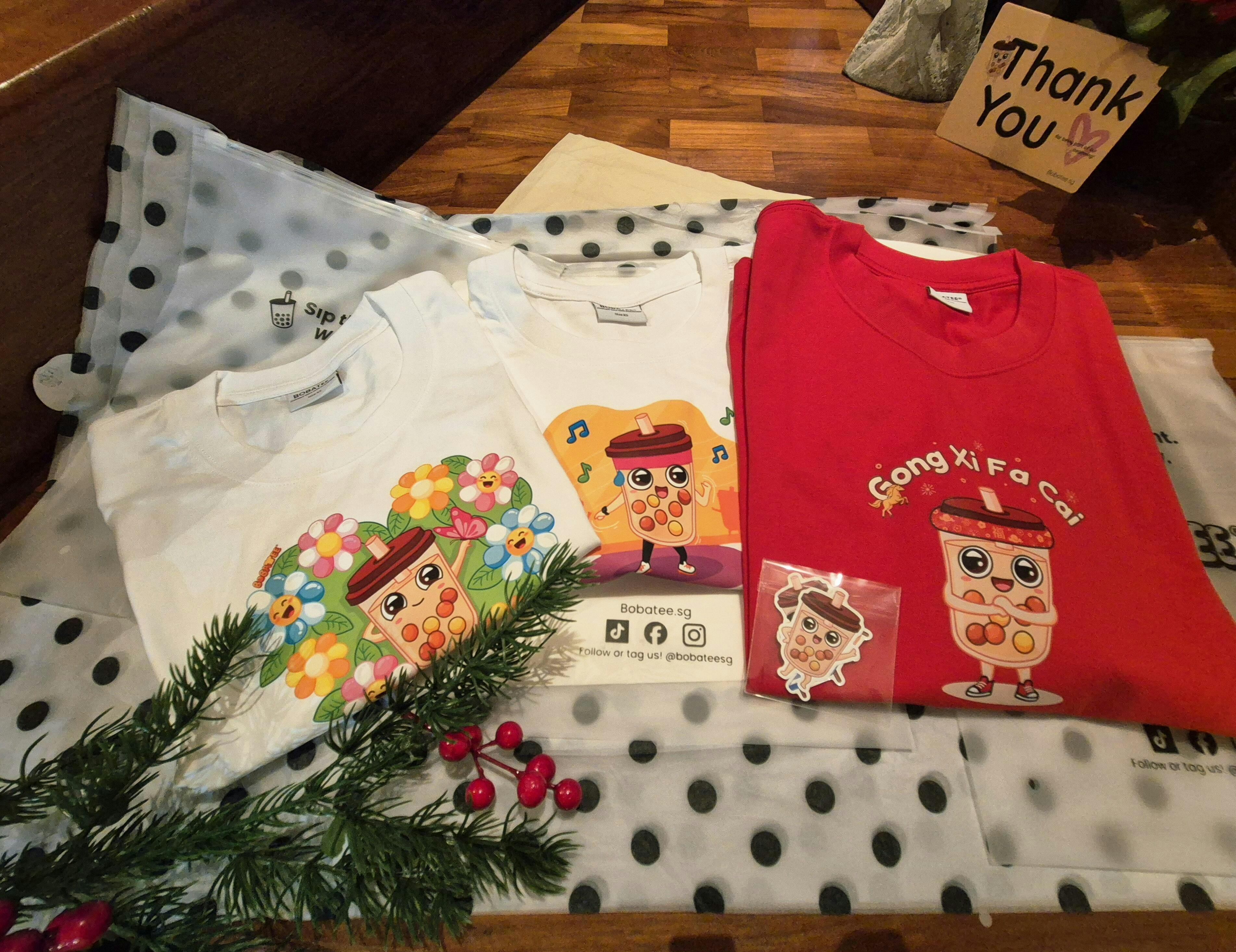 Start your Chinese New Year with a smile! This design features our adorable Boba mascot, decked out in auspicious red, performing the traditional fist-and-palm greeting and ready to wish "Gong Xi Fa Cai" to everyone you meet. It is a sweet, cheerful, and effortless way to spread the festive spirit without saying a word.